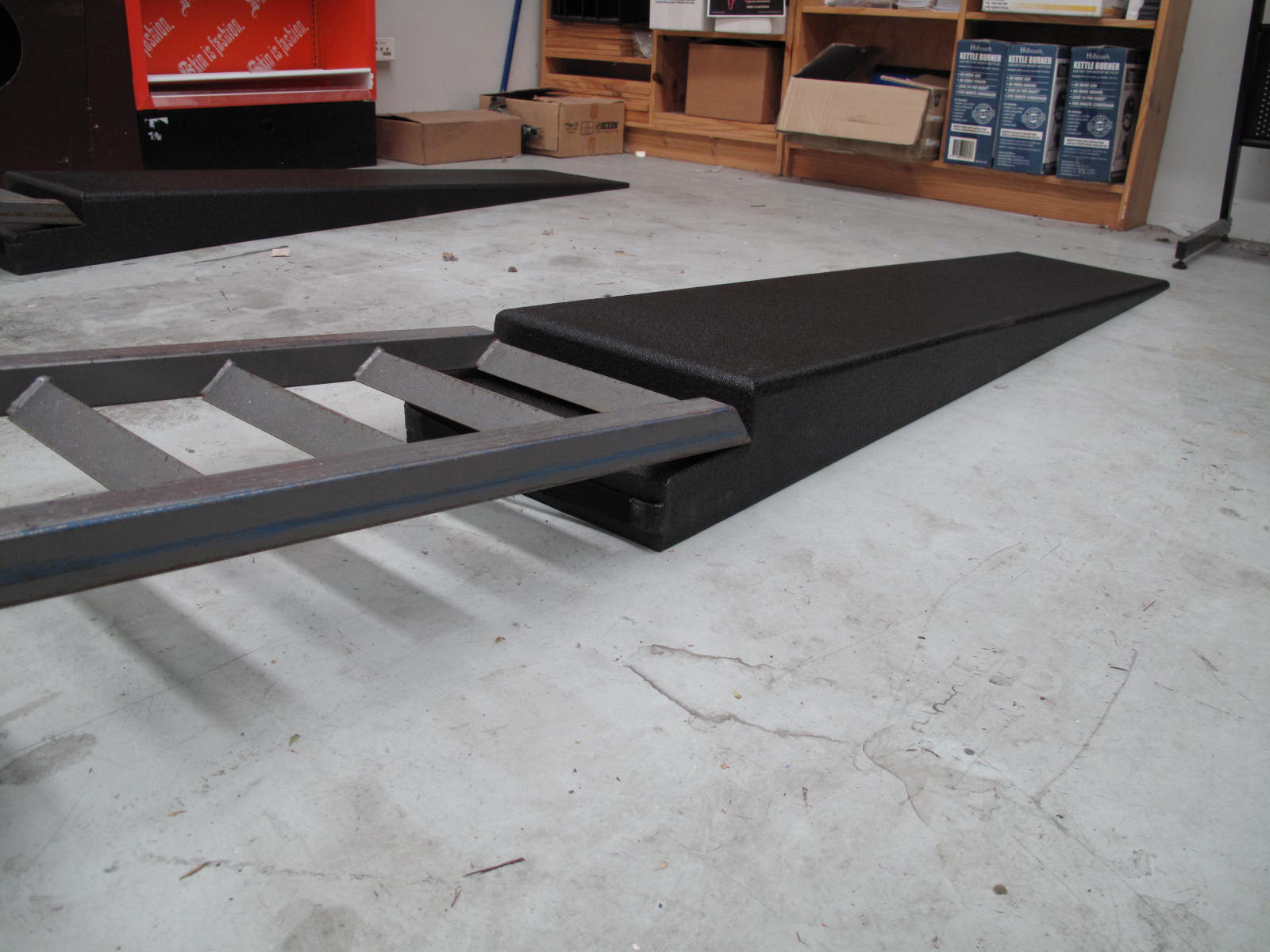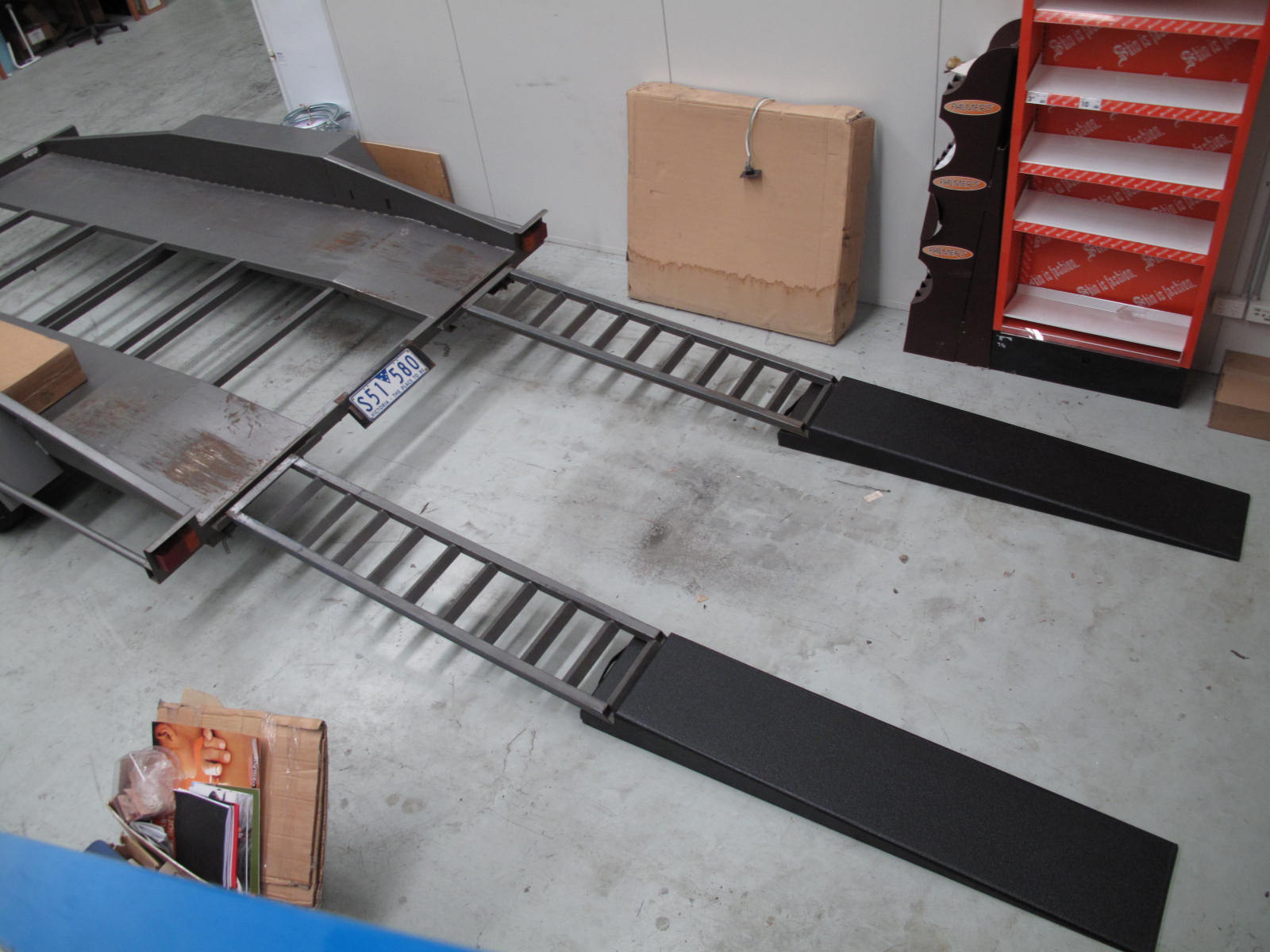Some aluminium trestles/planks would have also done the job, they would replace both the trailer ramps + race ramps 🙂